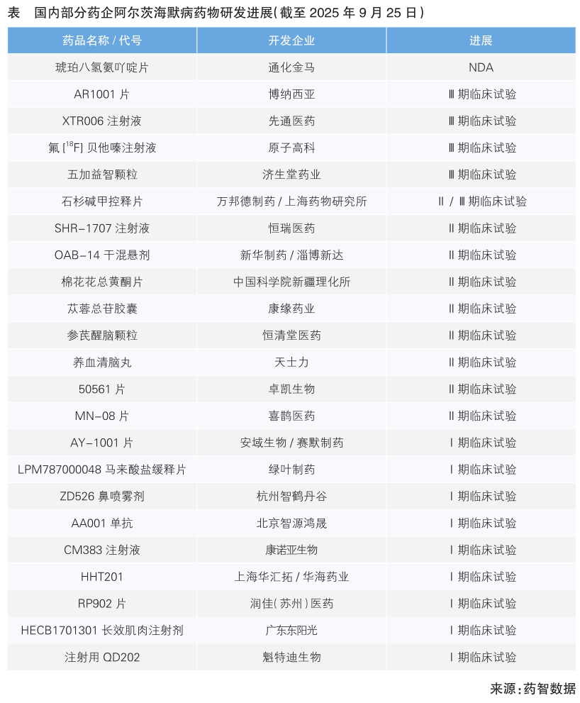 阿杜卡玛单抗由美国渤健与日本卫材联合开发,2021年6月获美国食品药品管理局(FDA)加速批准上市,虽带有脑水肿、脑出血风险的黑框警告,但目前仍在美国销售,未在我国获批。仑卡奈单抗由卫材与渤健联合开发,2023年7月获美国FDA完全批准,2024年1月在我国获批上市。多奈单抗由礼来研发,2024年7月获美国FDA批准,同年12月在我国获批上市。