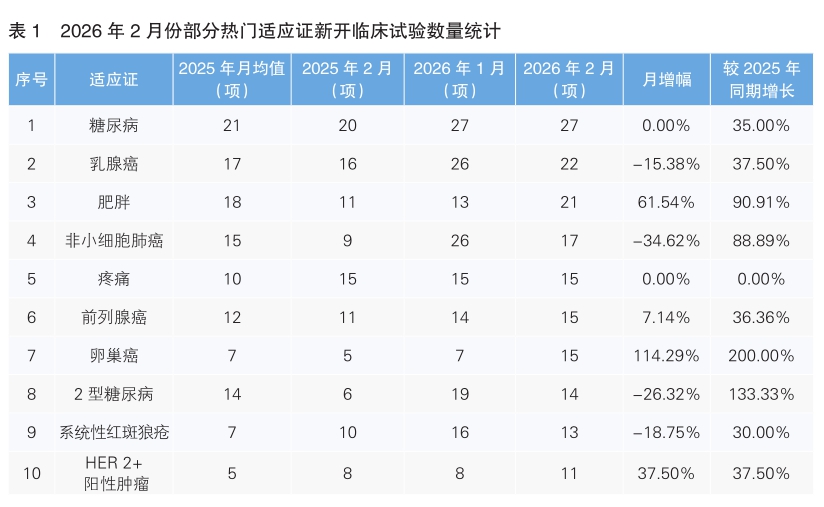 2月份美国Clinicaltrial数据库临床试验数据显示—— 糖尿病、乳腺癌、肥胖等适应证成研发热点